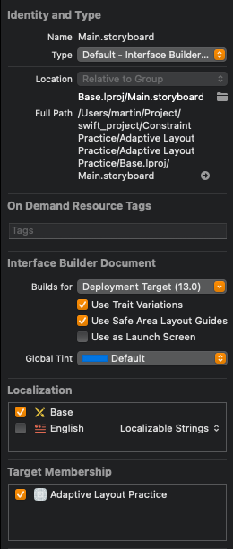 Adaptive Layout을 사용하기 위해서는 Storyboard의 File Inspector에서 Trait Variations를 활성화해야 한다.
