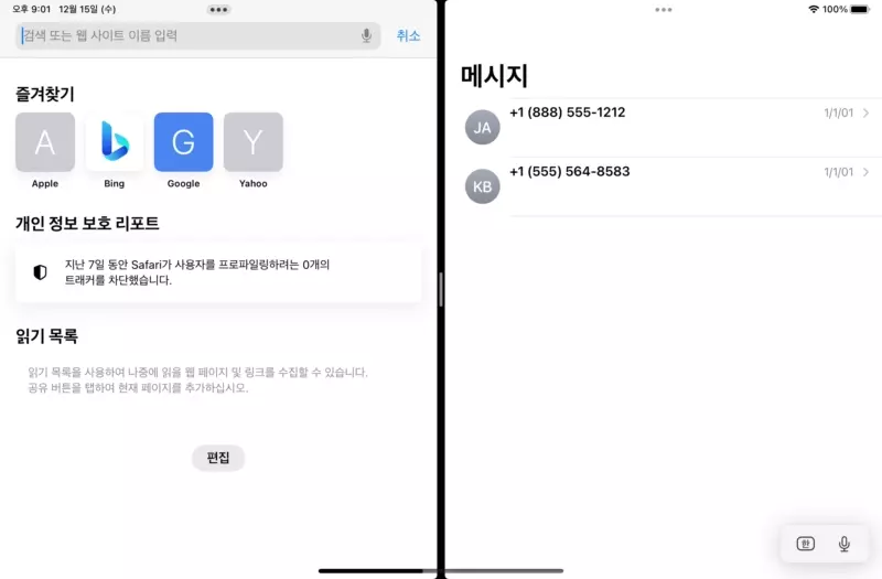 아이패드의 경우 Split View로 멀티 윈도우를 사용할 수 있다.