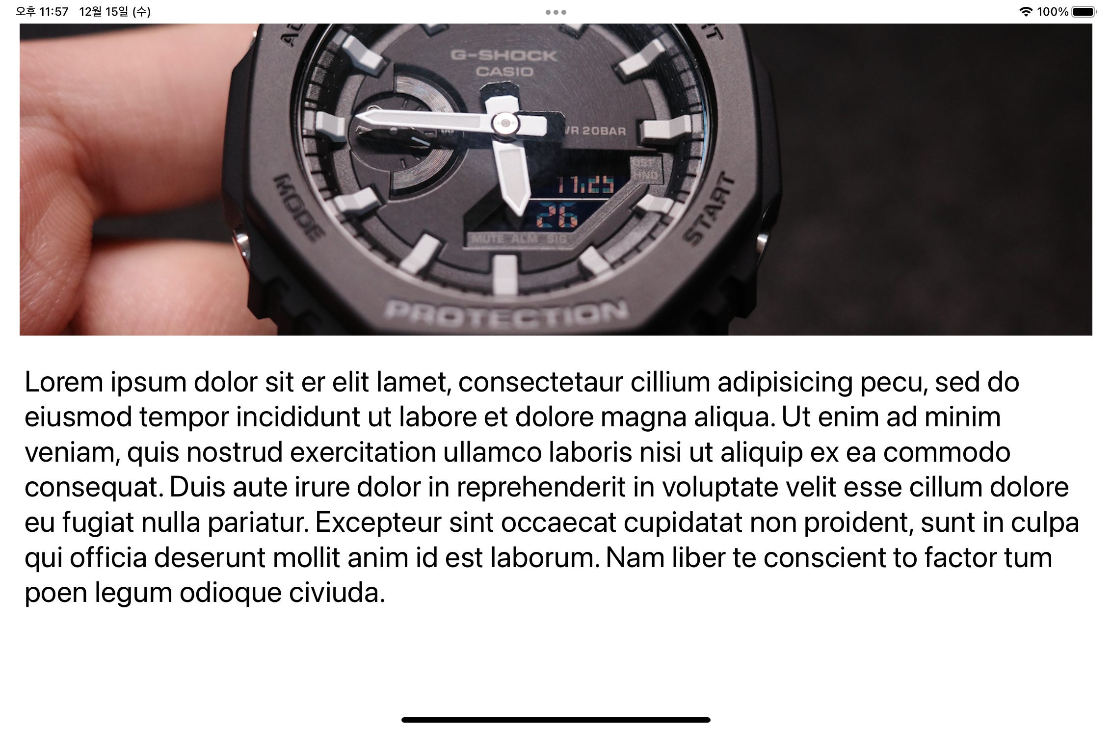 아이패드에서는 Image View와 Text View가 같은 높이로 표시되고, 더 큰 폰트를 사용하도록 구현한다.