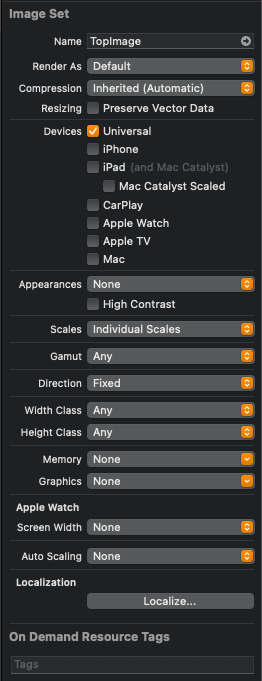 현재 Asset에 포함된 이미지 파일은 위와 같이 Univeral로 표시되어있다.