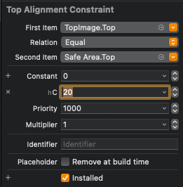 trailing 제약의 attribute로 이동해 가장 아래 단락의 '+' 버튼을 누른다.
