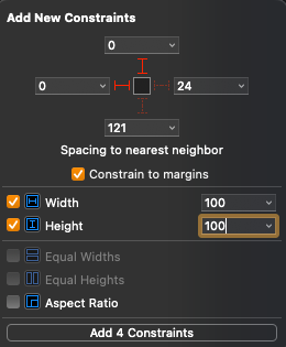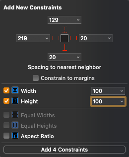 constraint(equalTo:constant:) 메서드를 사용해 대상과 값을 전달해 설정한다.