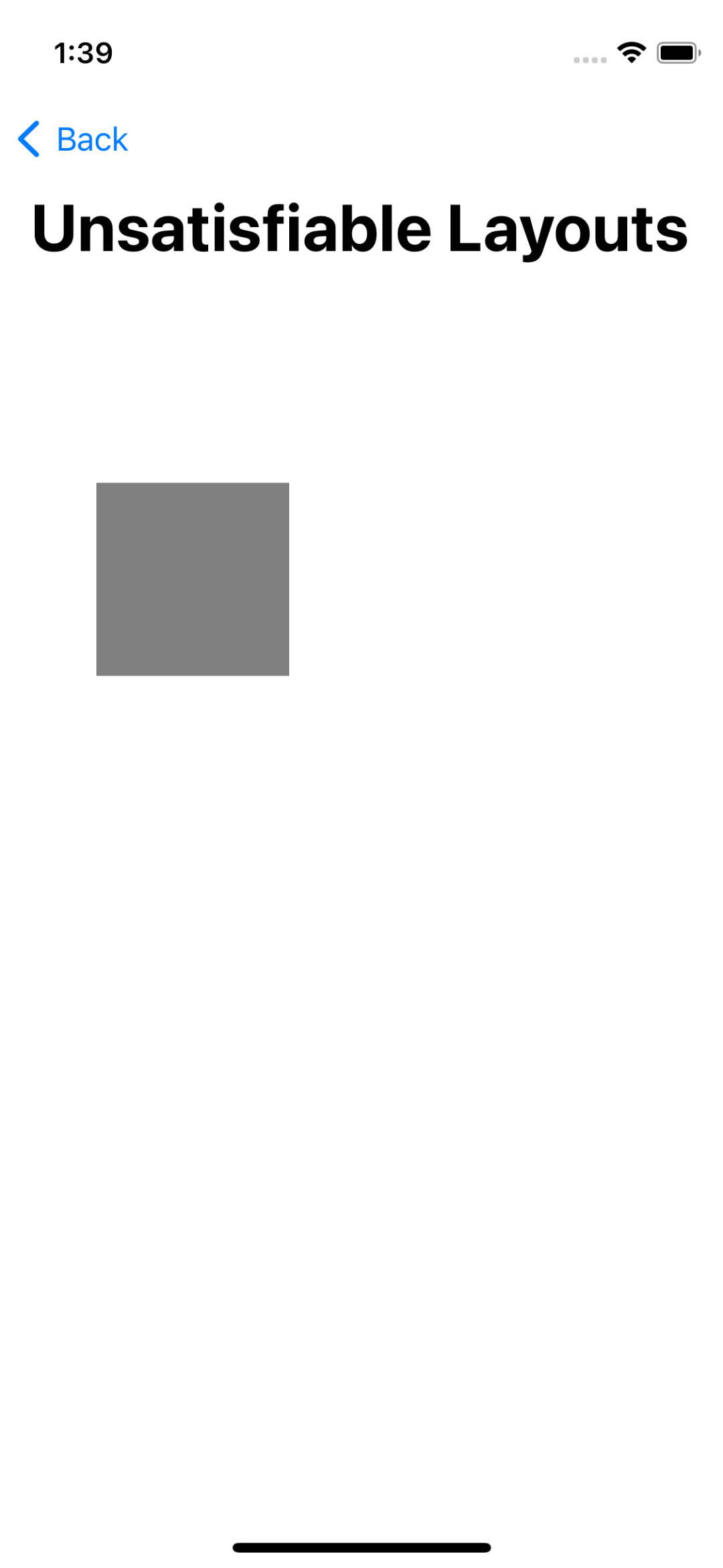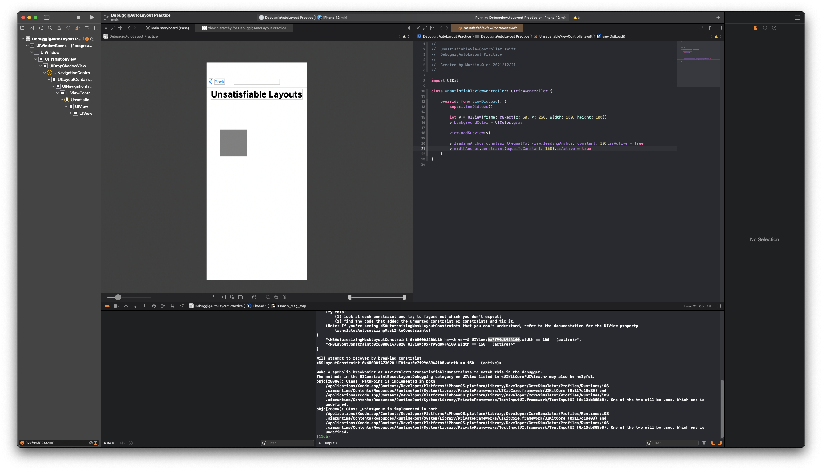 Unsatisfiable Layout Scene은 코드로 회색의 View를 생성하도록 대있다.