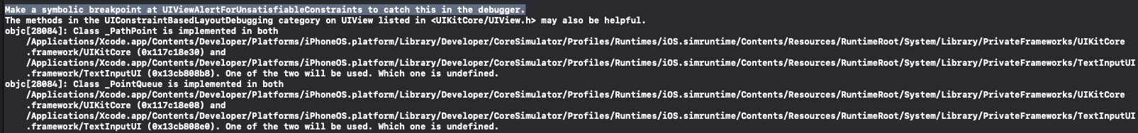 콘솔의 더 아래엔 Symbolic breakpoint에 대한 내용이 존재한다.
