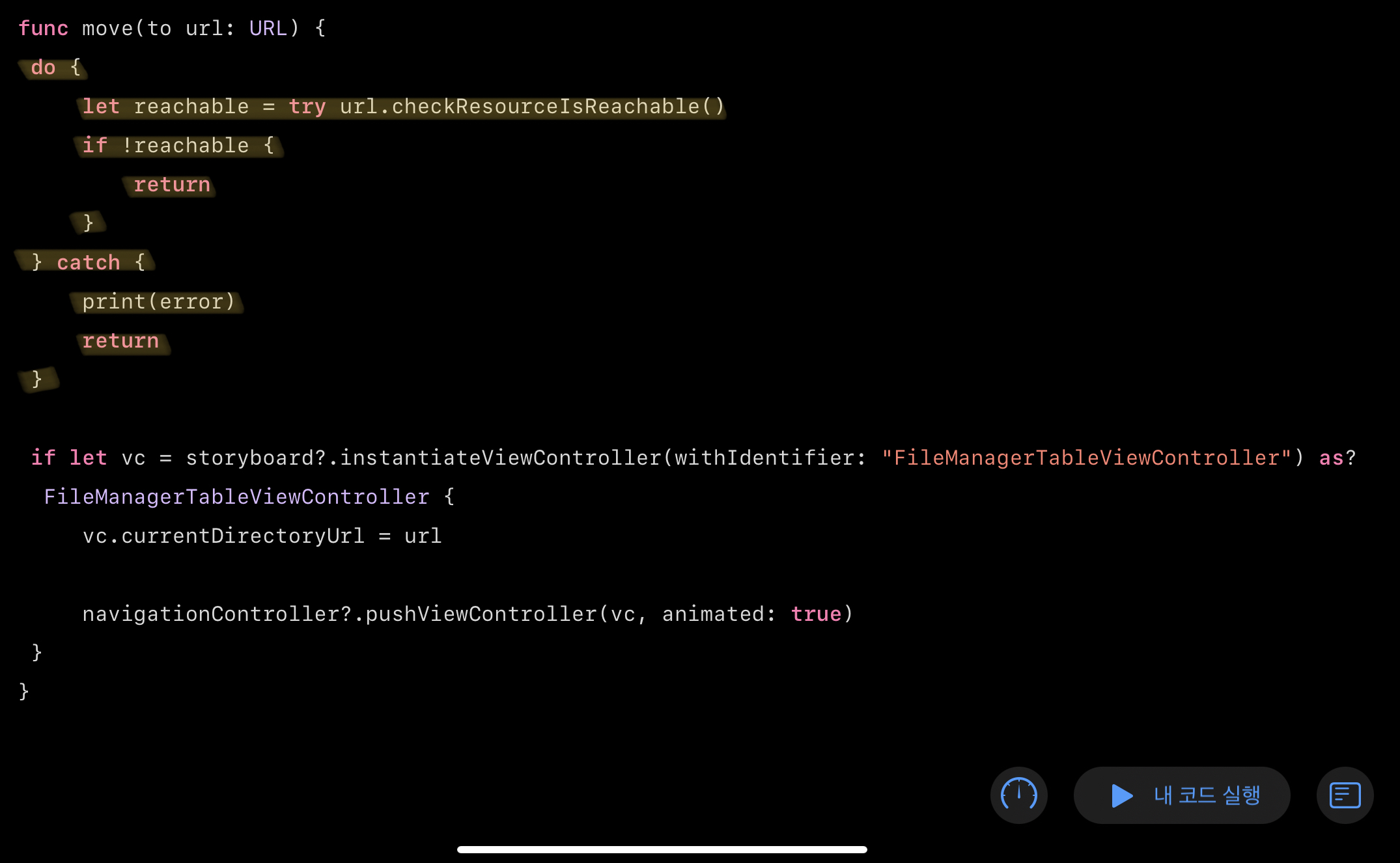 이 때 사용한 메서드는 URL(fileURLWithPath:)메서드로 파일의 경로를 생성한다.