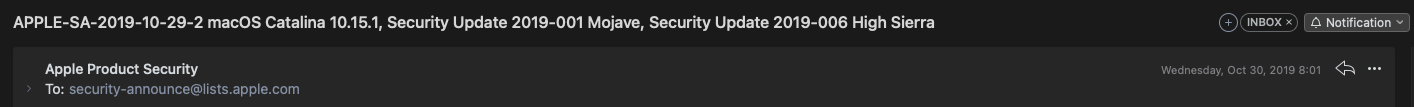 애플은 보안 업데이트에 착수한 경우 보고한 사람, 단체에 대해 명부를 작성하는 대우를 하고 있다는 메일이 도착했다.