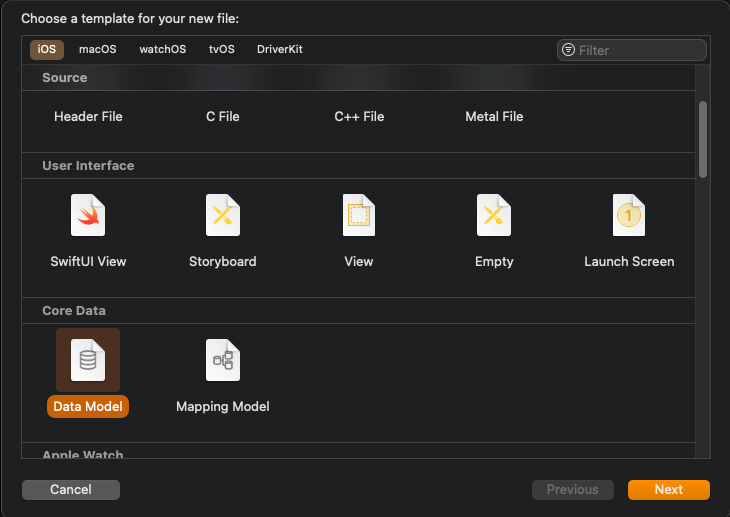 이전 일지엔 프로젝트 생성시에 CoreData를 함께 생성해 자동으로 Data Model과 관련 파일이 생성되지만,