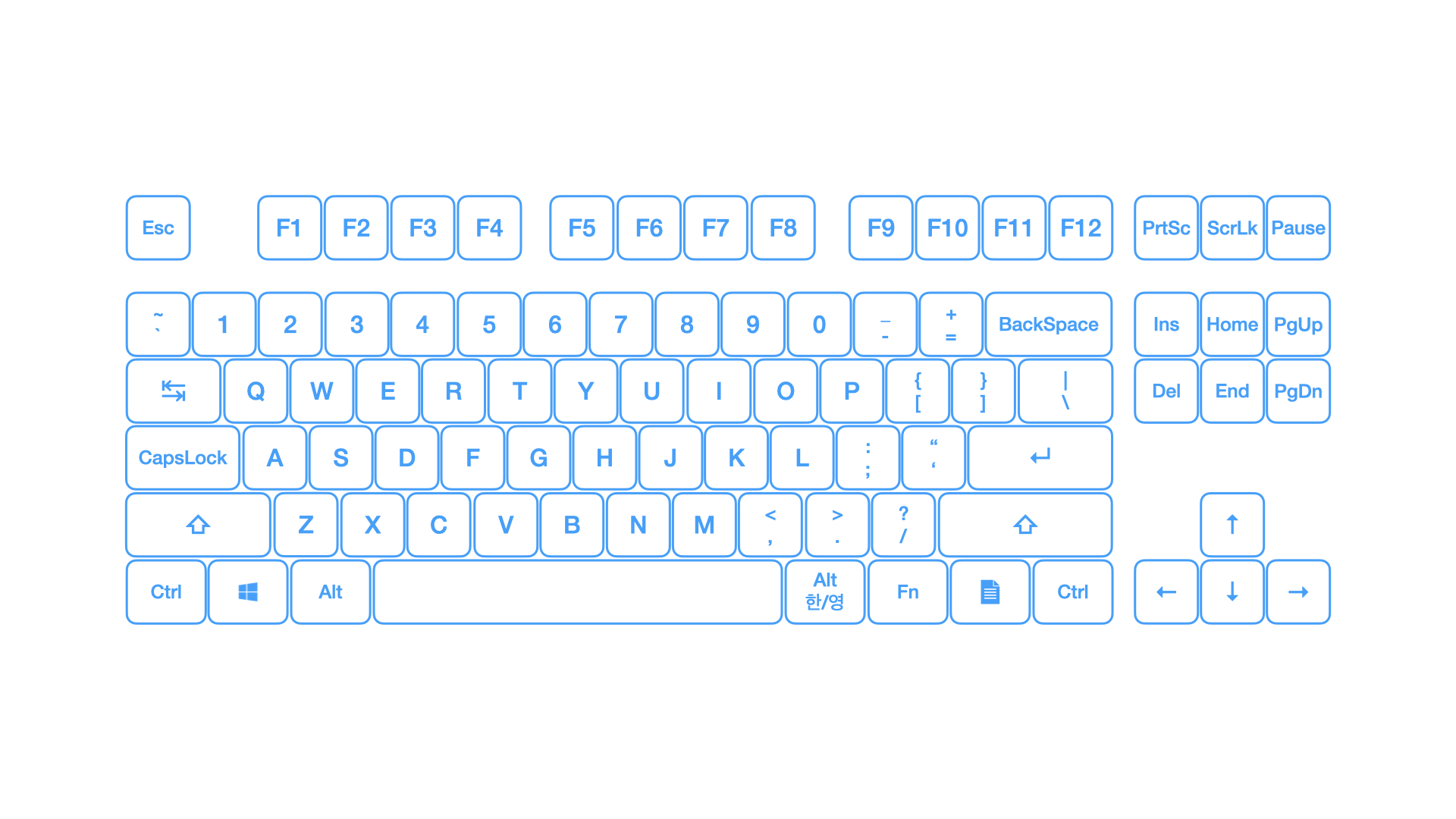 일반적인 윈도우 기반 TKL 키보드의 배열로, 대부분의 키는 정상적으로 인식되고, 정상적으로 동작한다.