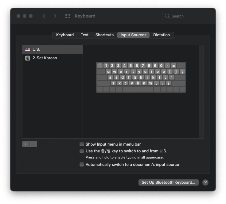 위의 화면으로 접근해 'Use the 한/영 key to switch to and from U.S.'