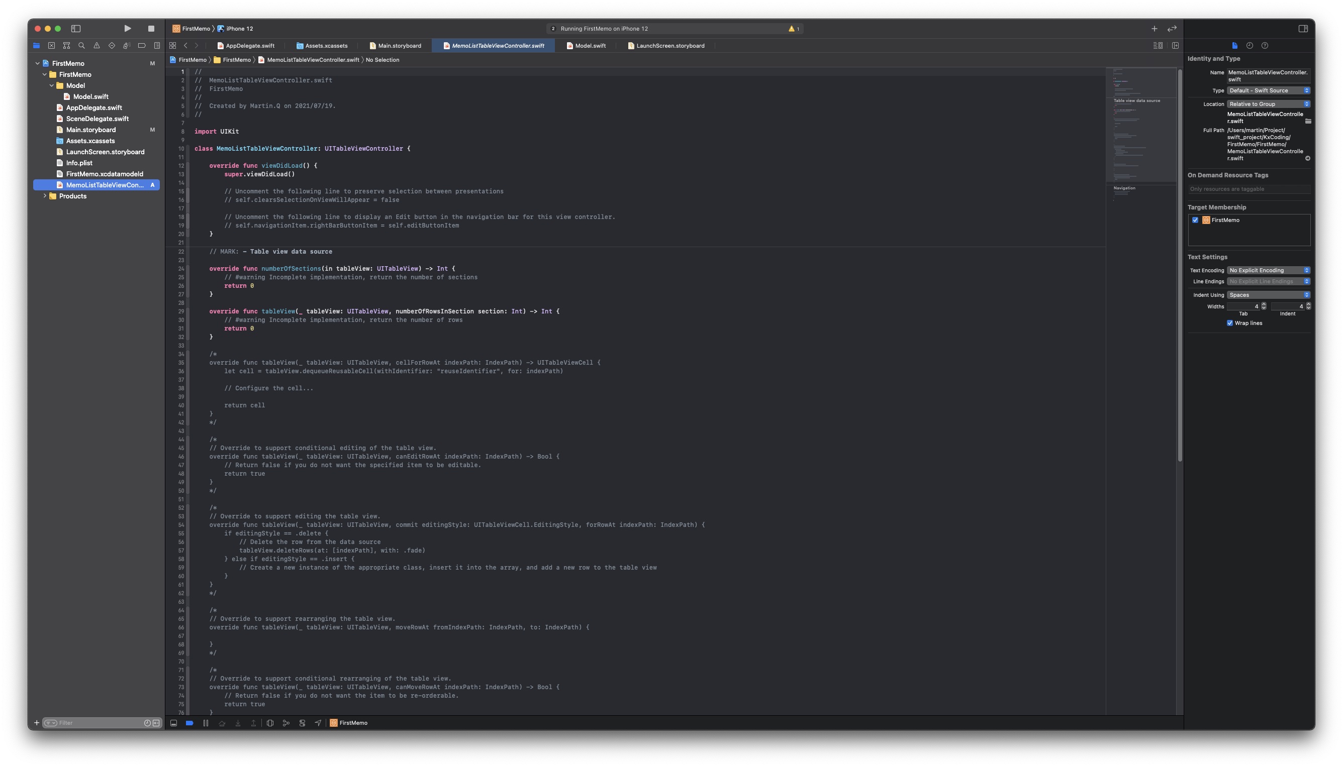 방금 생성한 MemoListTableViewController 가 UITableViewController를 상속받고 있다.