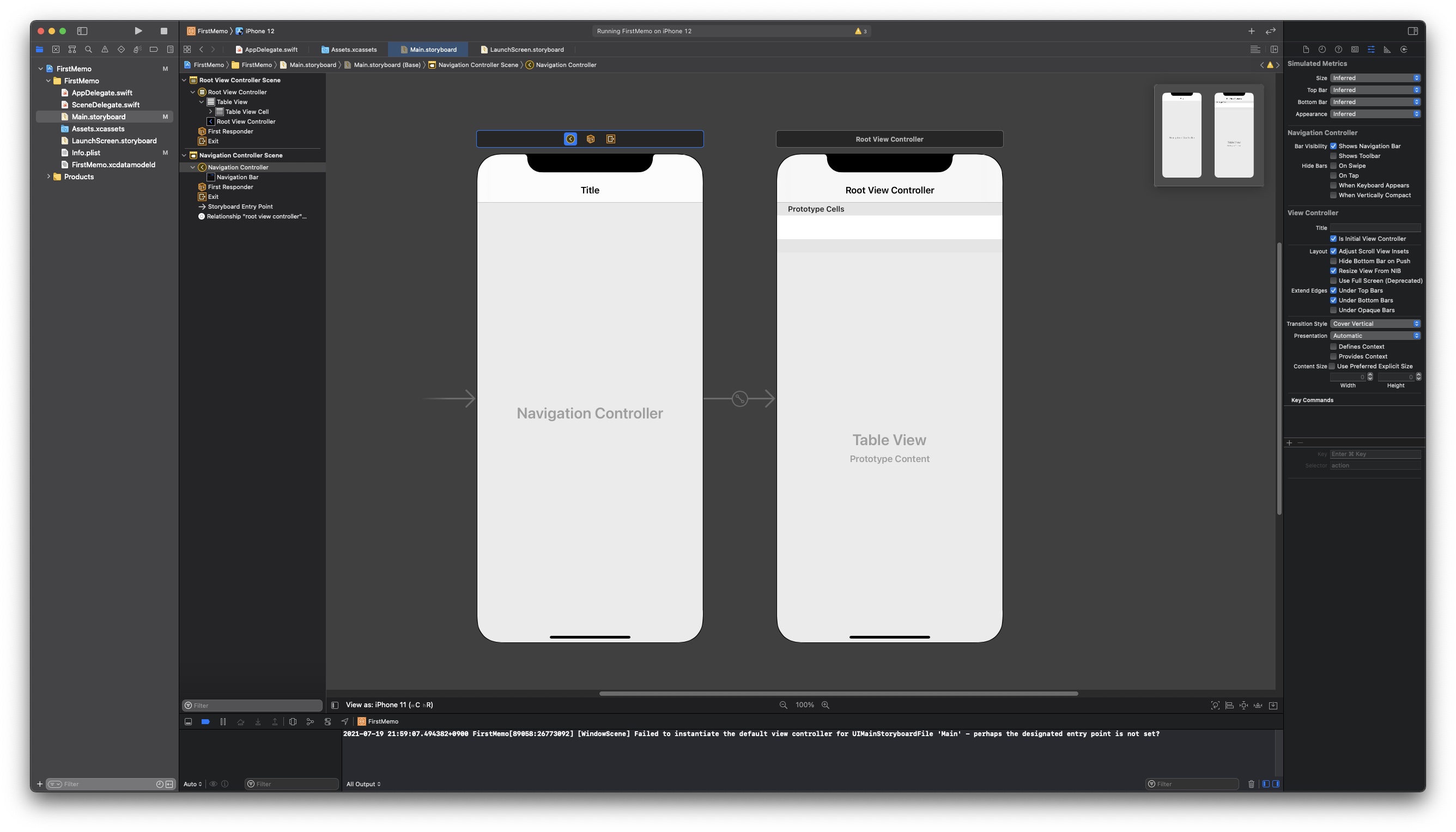 그냥 사용해도 괜찮지만 강의에선 해당 씬과 뷰 컨트롤러를 삭제한 상태로 개발을 시작한다.