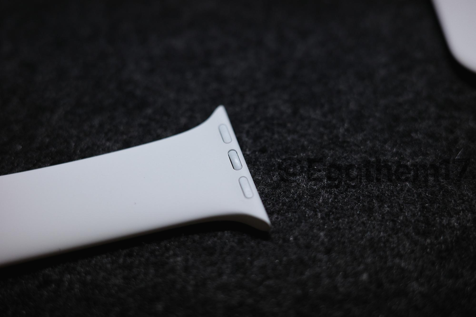 밴드가 워치에 들어가면 볼록하게 튀어나온 부분이 본체에 눌리며 반대쪽이 튀어나와 본체에 고정되는 방식이다.