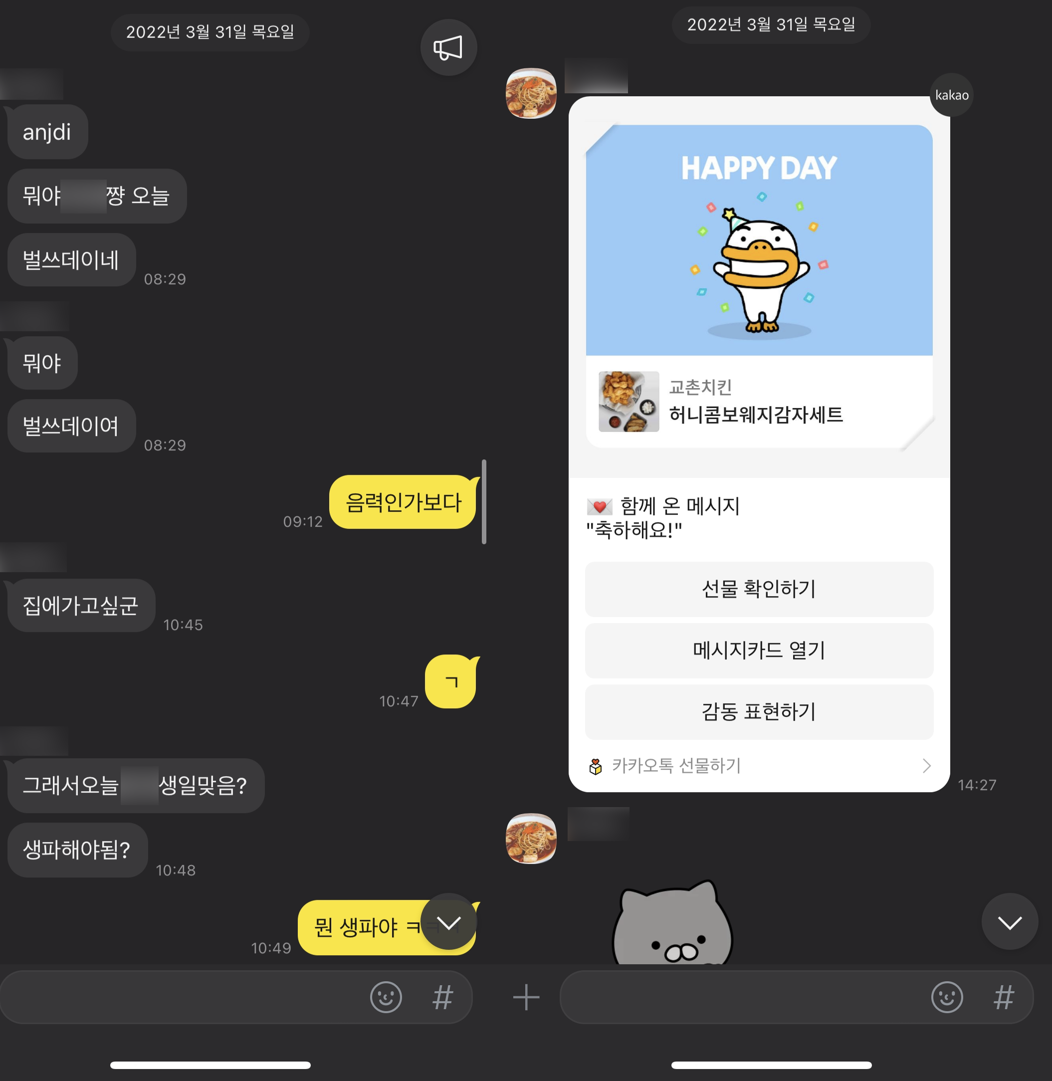 대뜸 생일 축하 알림이 가고 선물과 축하가 쏟아지기 시작했다.