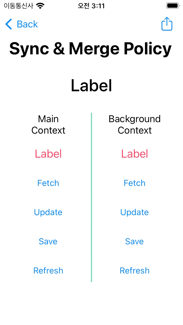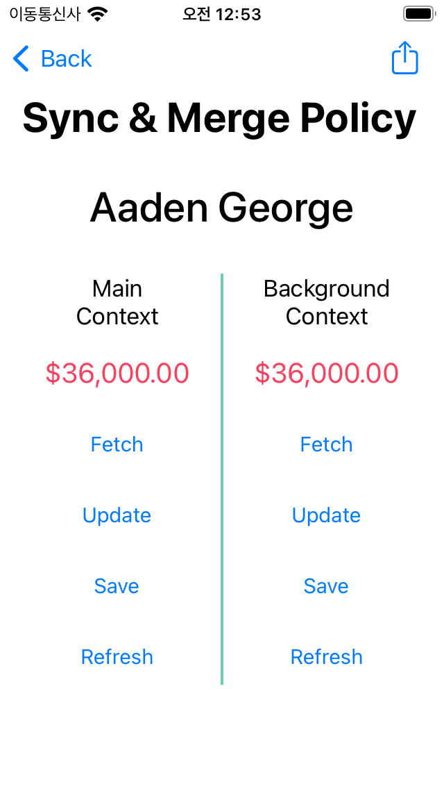 Main Context와 Background Context에서 같은 Entity의 같은 데이터에 접근한 뒤,