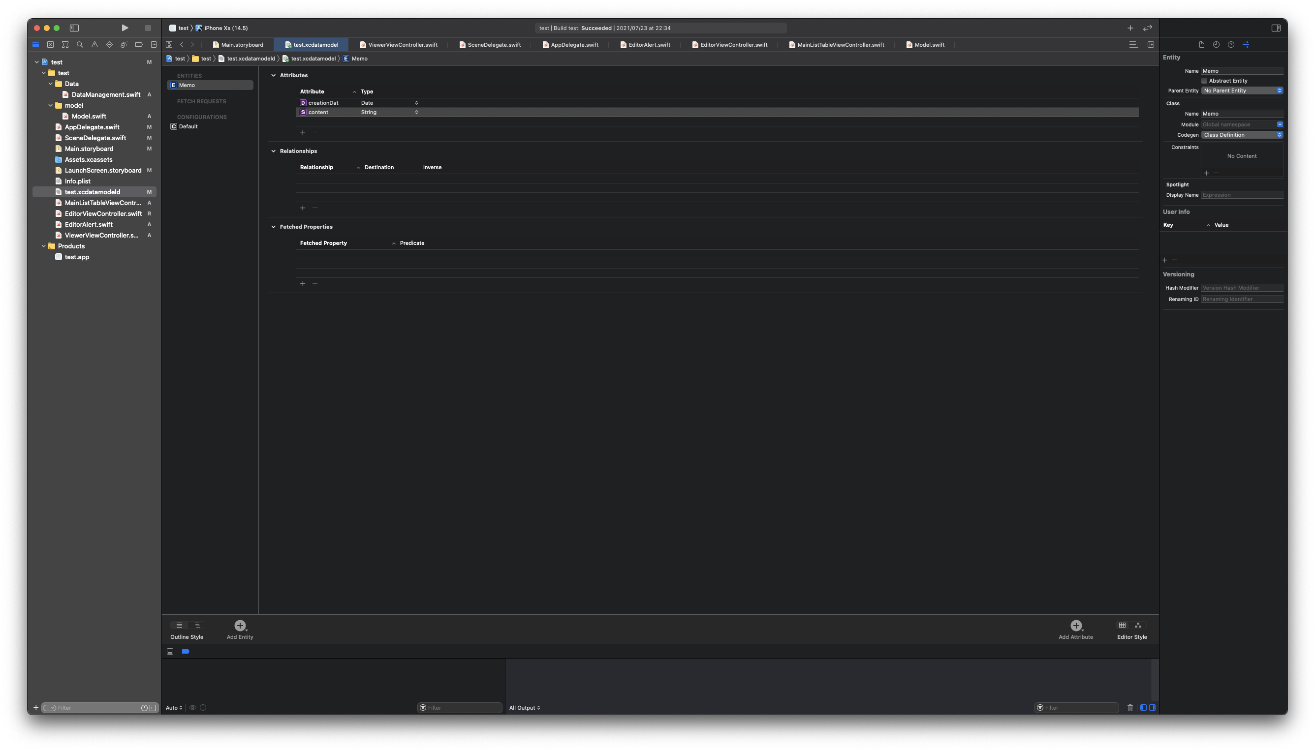임시로 생성해 뒀던 Memo 클래스와 CoreData가 생성한 Memo 클래스가 중복되기 때문이다.