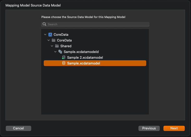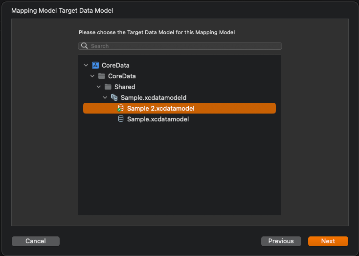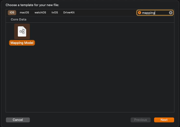 파일은 mappingModel 파일로 mapping 규칙을 설정하게 될 파일이다.