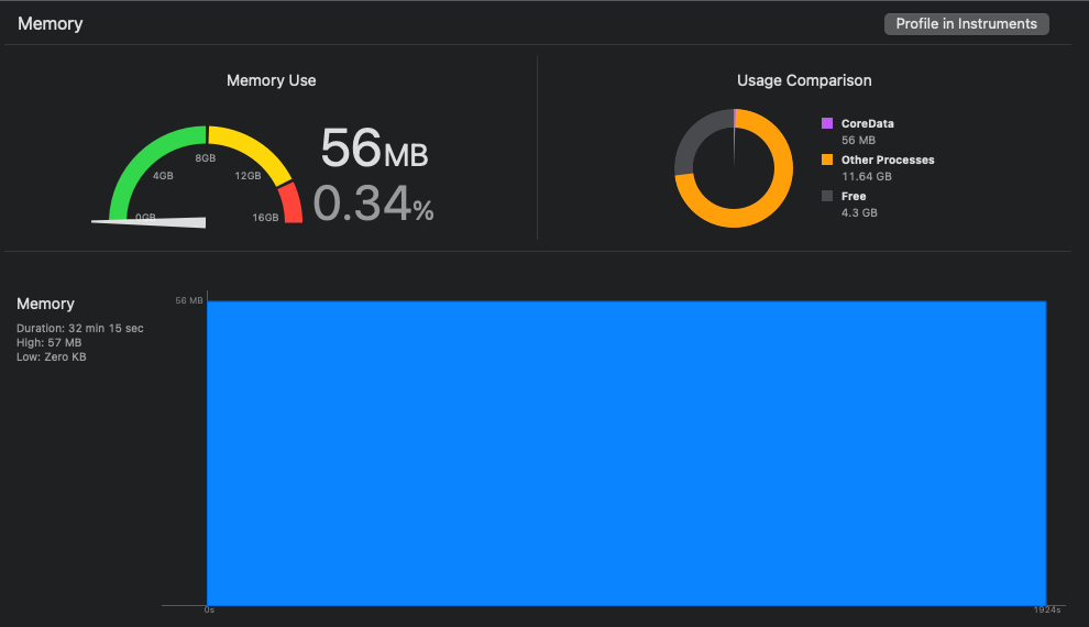 문제가 됐던 Migration Scene에 진입해도 이전의 190MB가 아닌 50MB 수준으로 효율적으로 사용하고 있는 것을 확인할 수 있다.