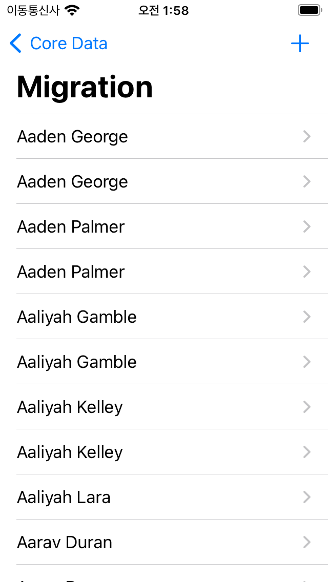 Migration Scene은 Employee 데이터의 이름만 TableView에 표시하지만,