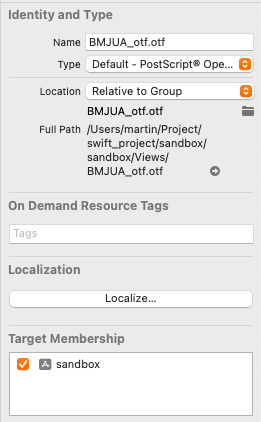 폰트 파일의 File Inspector에서 Target Membership이 앱으로 잘 지정돼 있는지 확인한다.