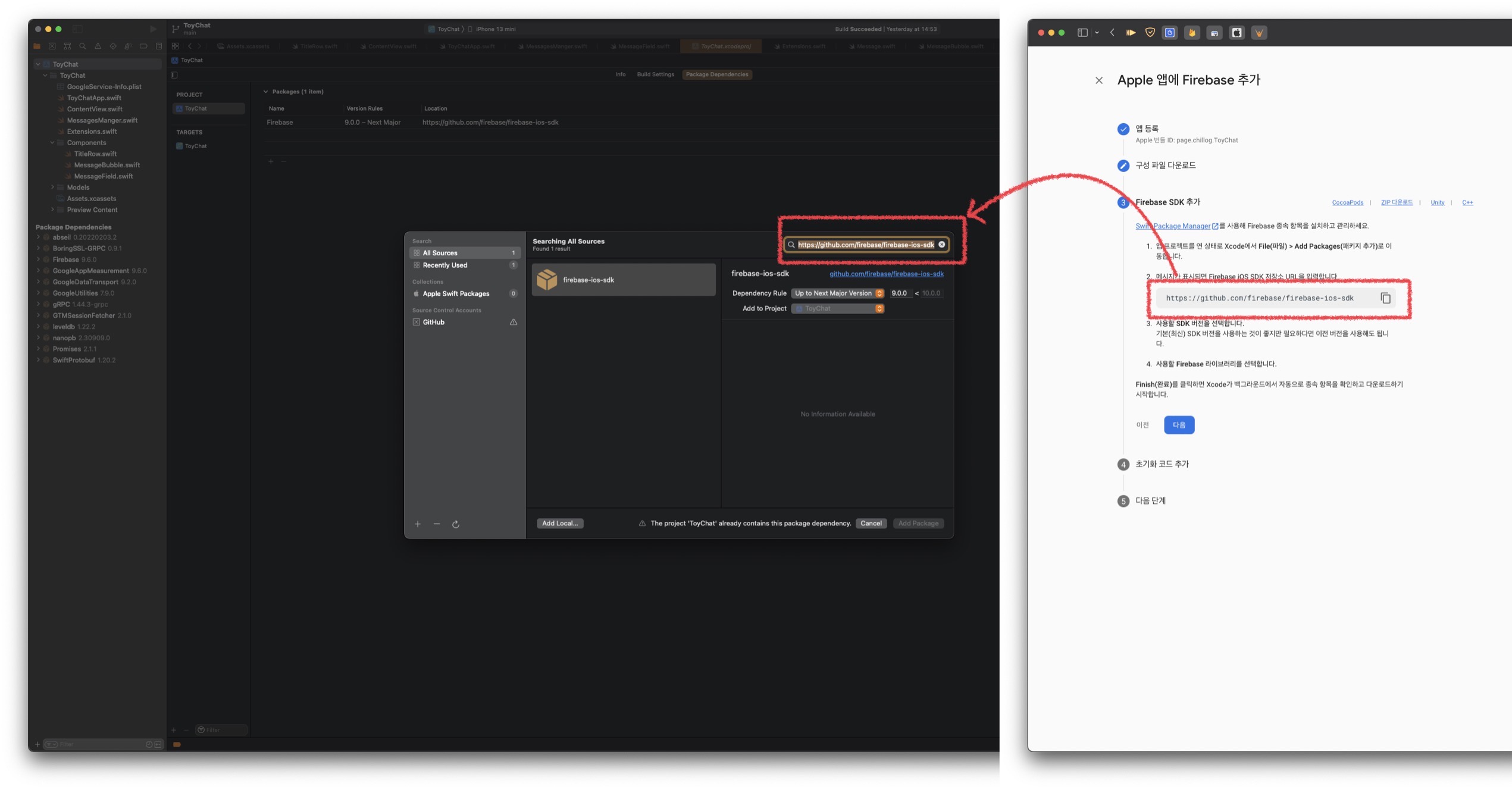 이제 Xcode 프로젝트에 Firebase를 추가해 주면 된다.