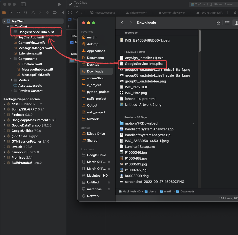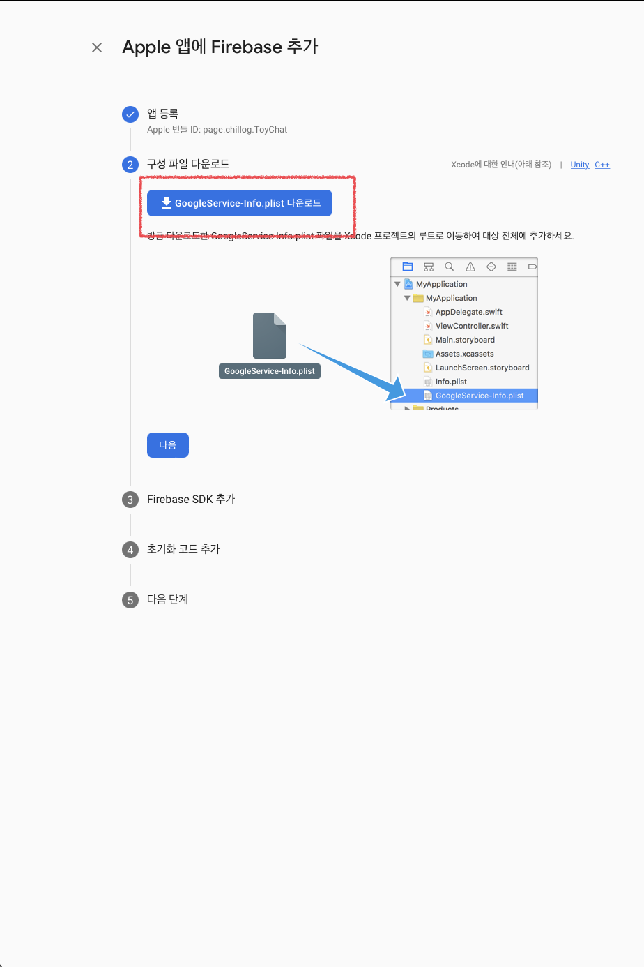 그다음 GoogleService-Info.plist 파일을 다운로드하여