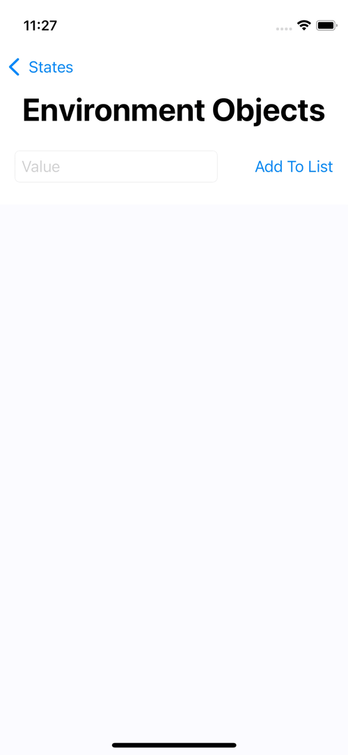 'Add To List' 버튼을 누르면 TextField에 작성한 문자열을 viewModel의 list 속성에 저장한다.