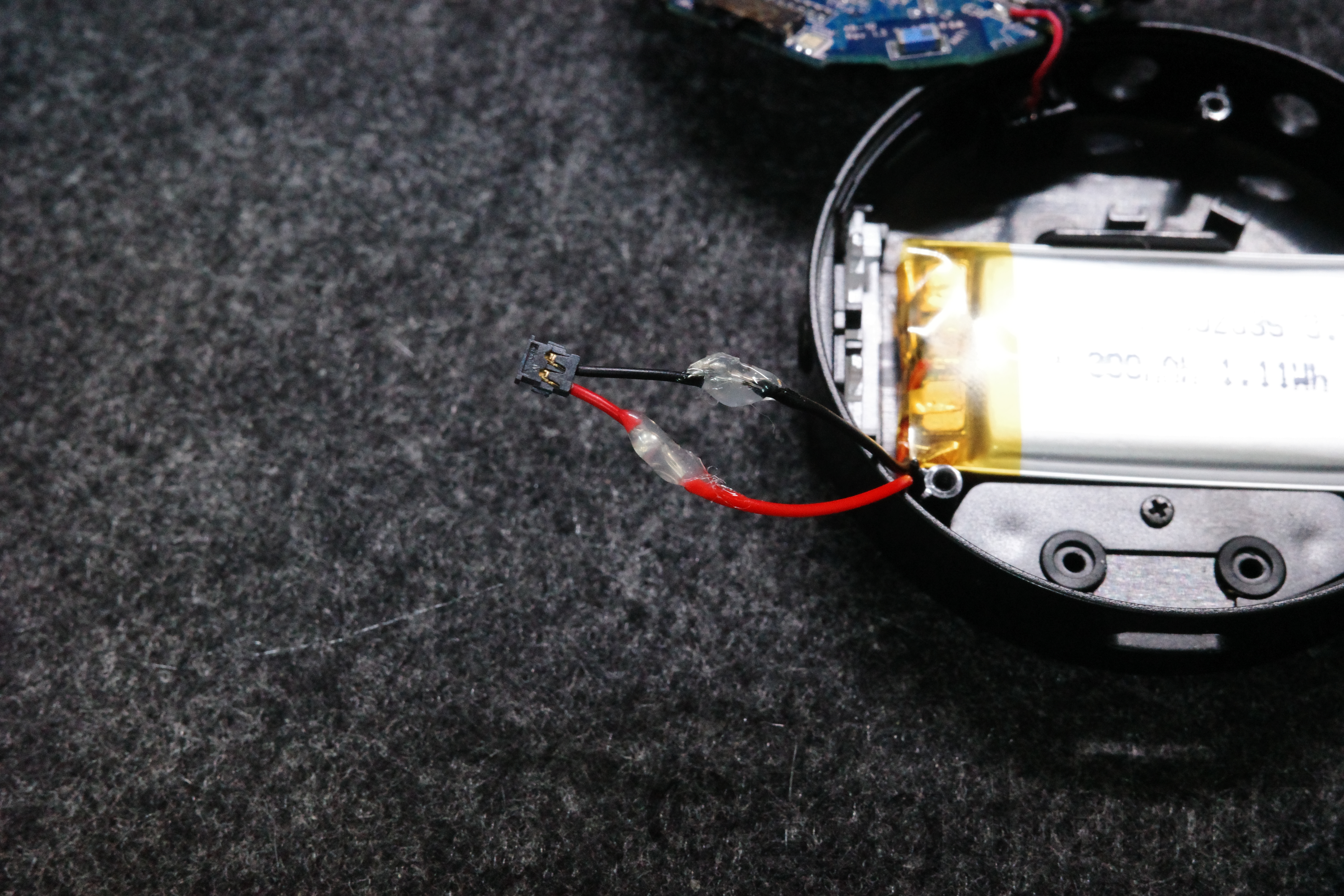 배터리는 커넥터로 메인보드에 연결 돼 있고, 하우징 바닥에 양면테이프로 부착돼 있다.