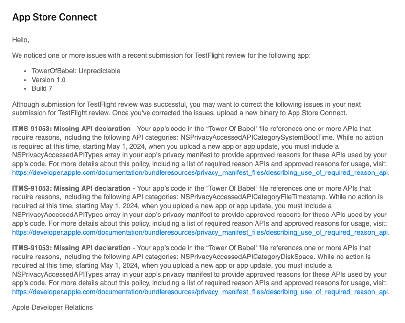 일단 참 친절하게도 빌드를 앱스토어 커넥트에 올리게 되면 위와 같은 메일이 바로 날아오게 된다.