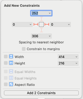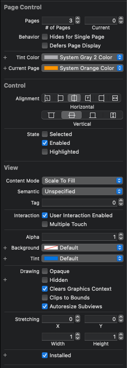 해당 화면에 pageControl을 추가하고 horizontal과 아래쪽에 제약을 추가해 레이아웃을 고정한다.