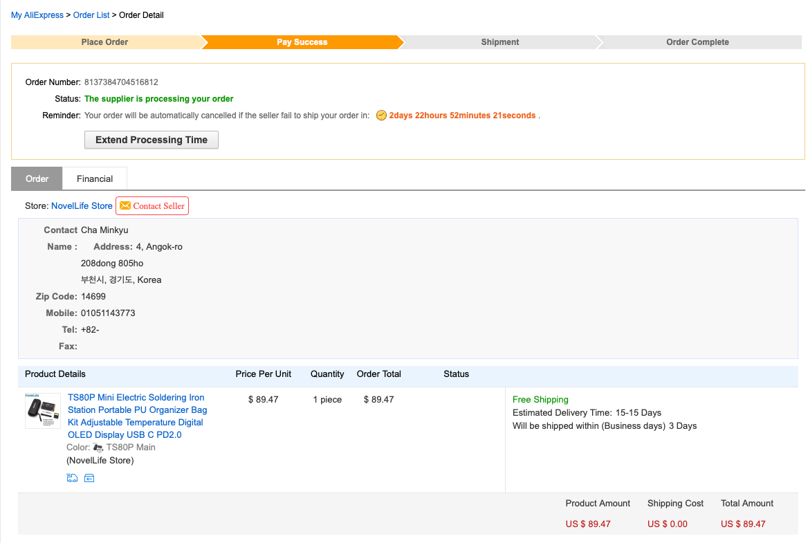 셀러도 시차로 인해 답변이 조금 늦고, 외국어로 대화하다 보니 오해가 좀 있었을 뿐이지,