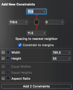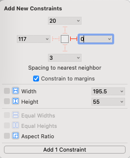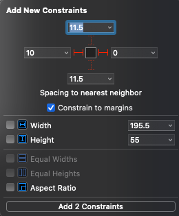 이번엔 오른쪽의 스택을 선택하고 위와 아래에 제약을 추가한다.