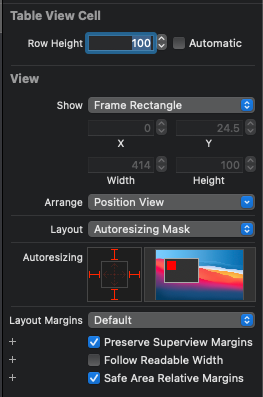size inspector에서 Constant를 Greater then으로 변경하면 셀 디자인은 완료된다.