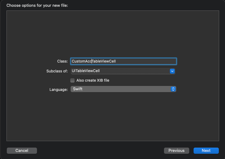 UITableViewCell을 상속받는 새 파일을 생성하고