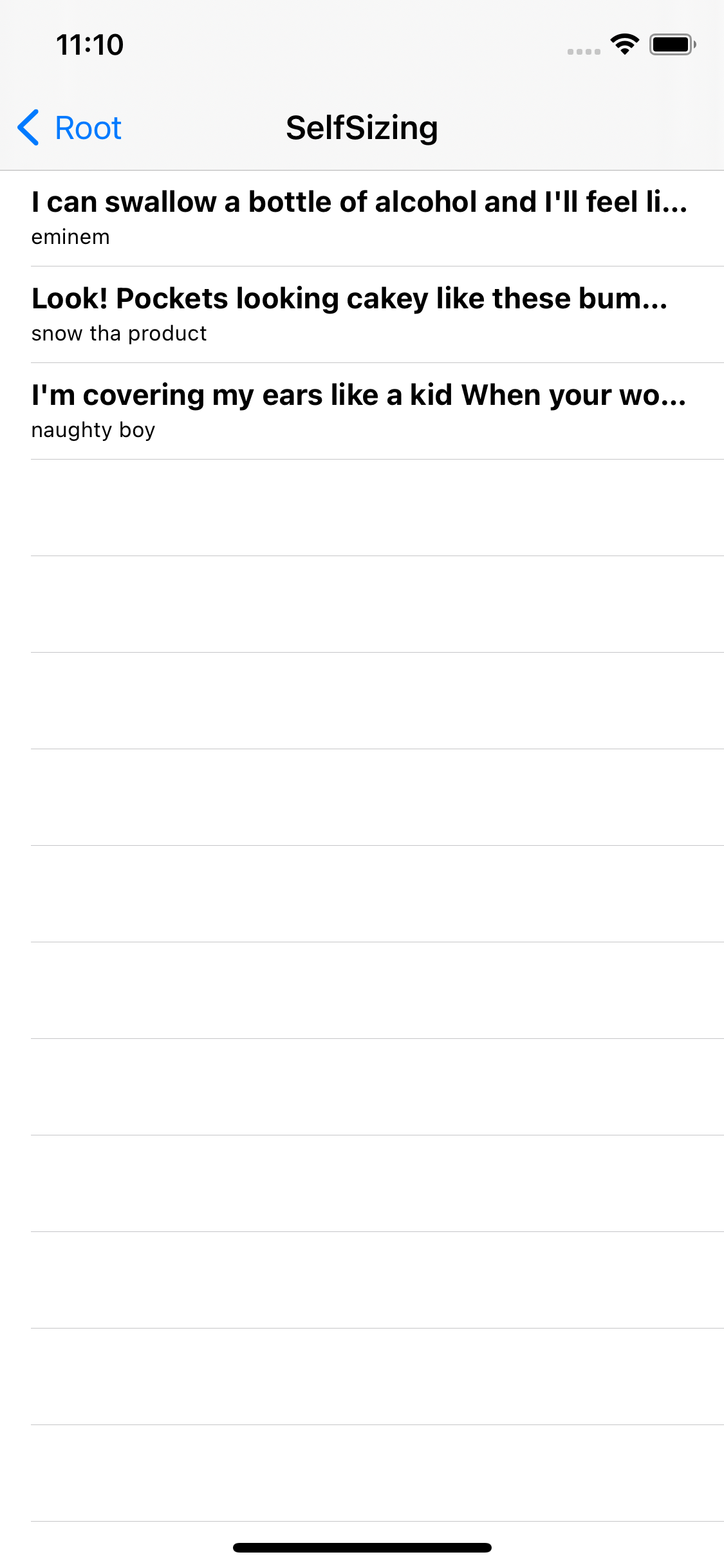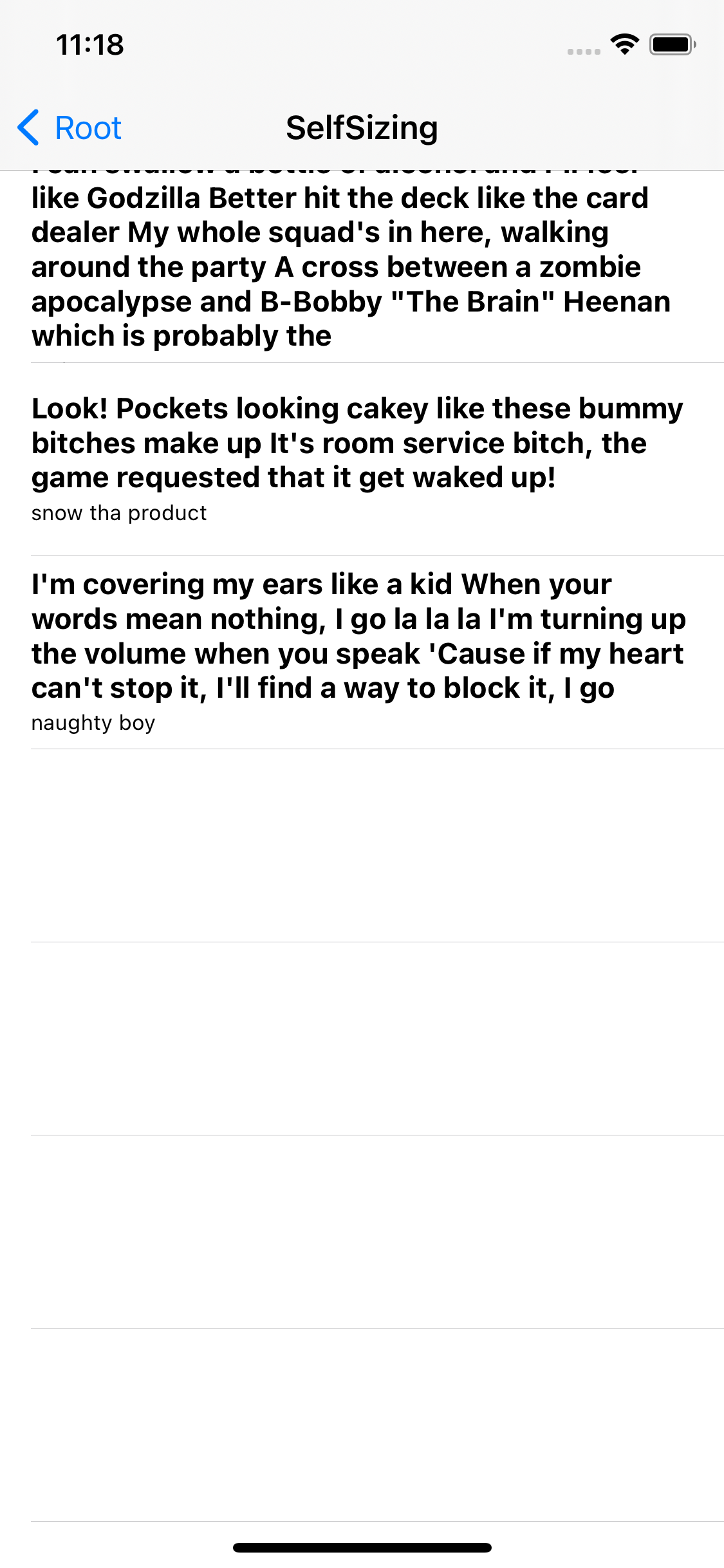 이번엔 tableView의 selfSizing을 활성화하고 실행해 보자.