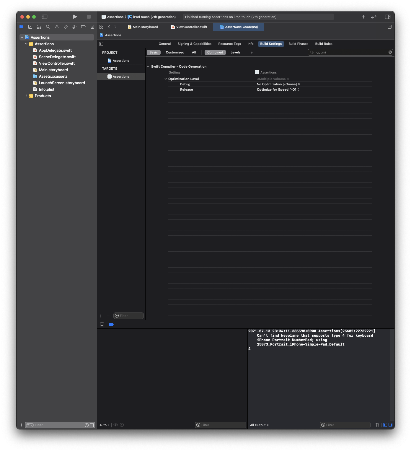 릴리즈 모드에선 assertion이 동작하지 않는 것이 확인됐다.