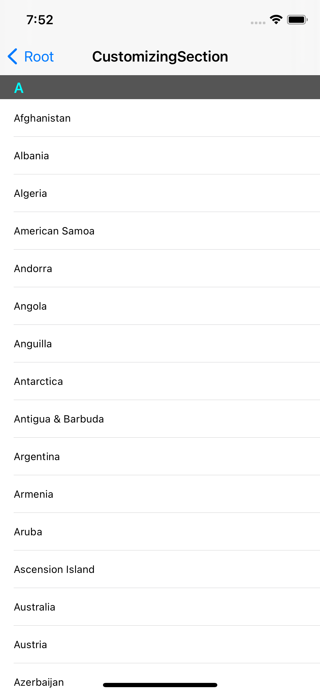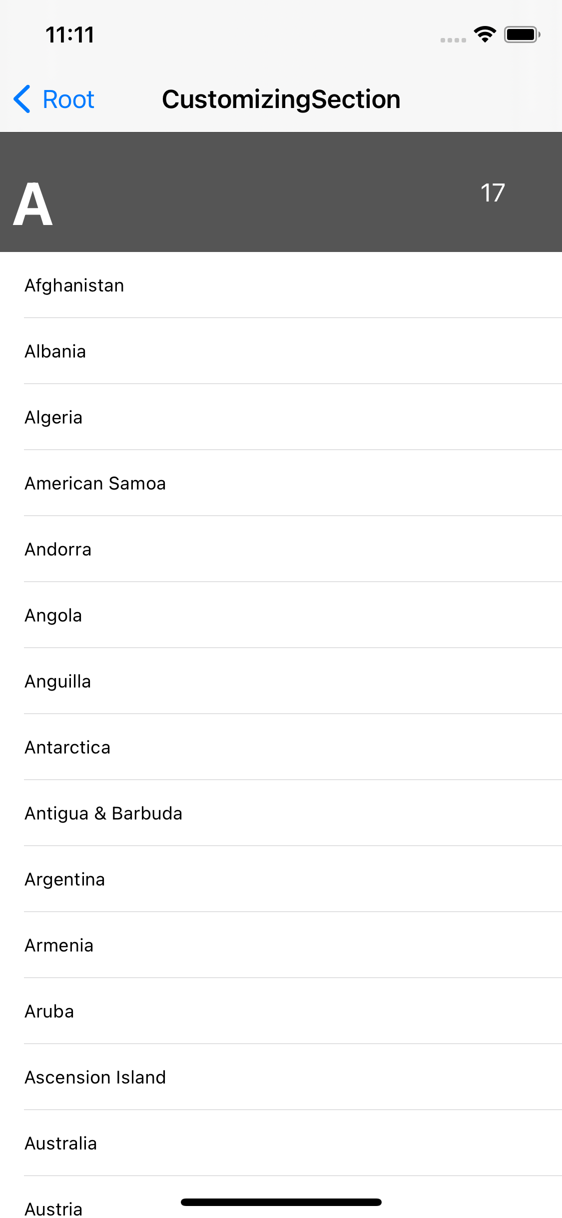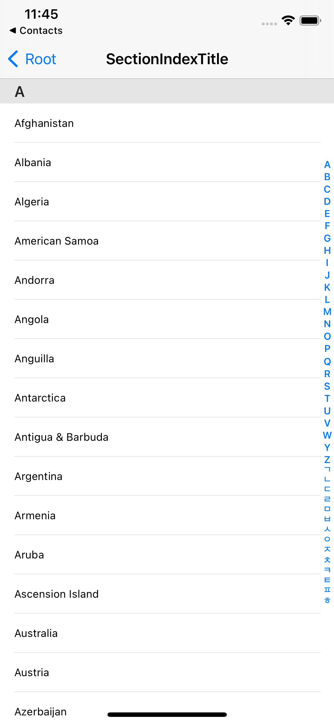반환된 배열은 알파벳이나 초성에 따라 여러 섹션에 나뉘어 각각의 언어로 Table에 표시된다.
