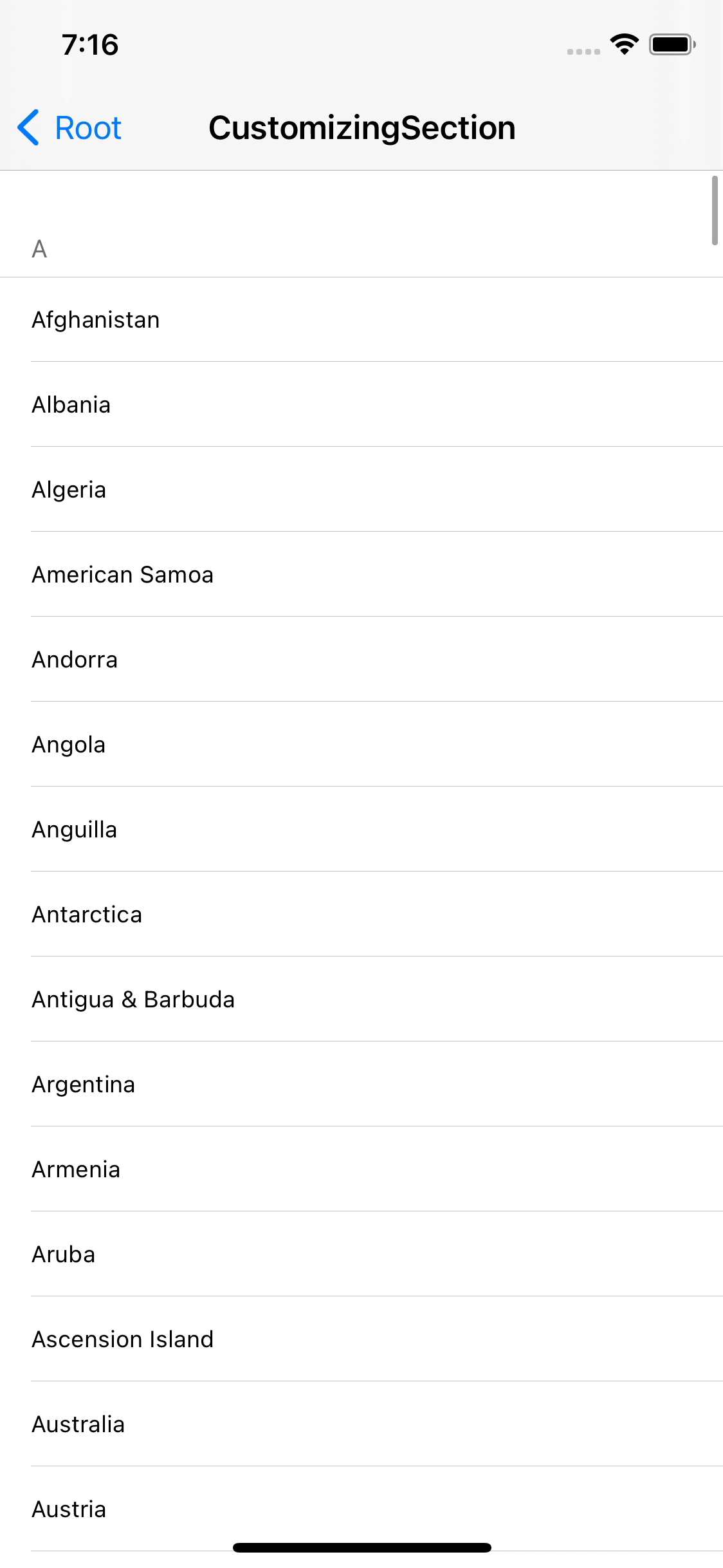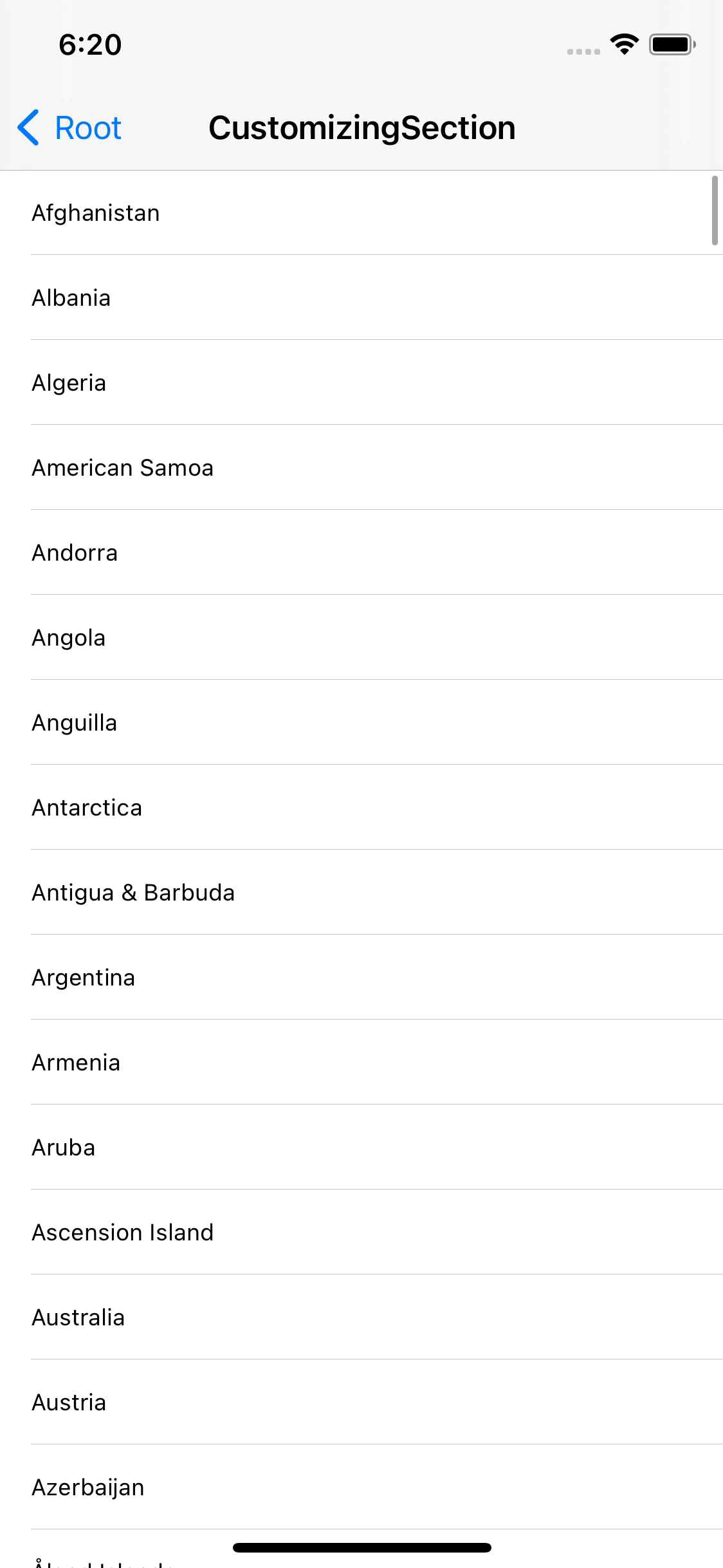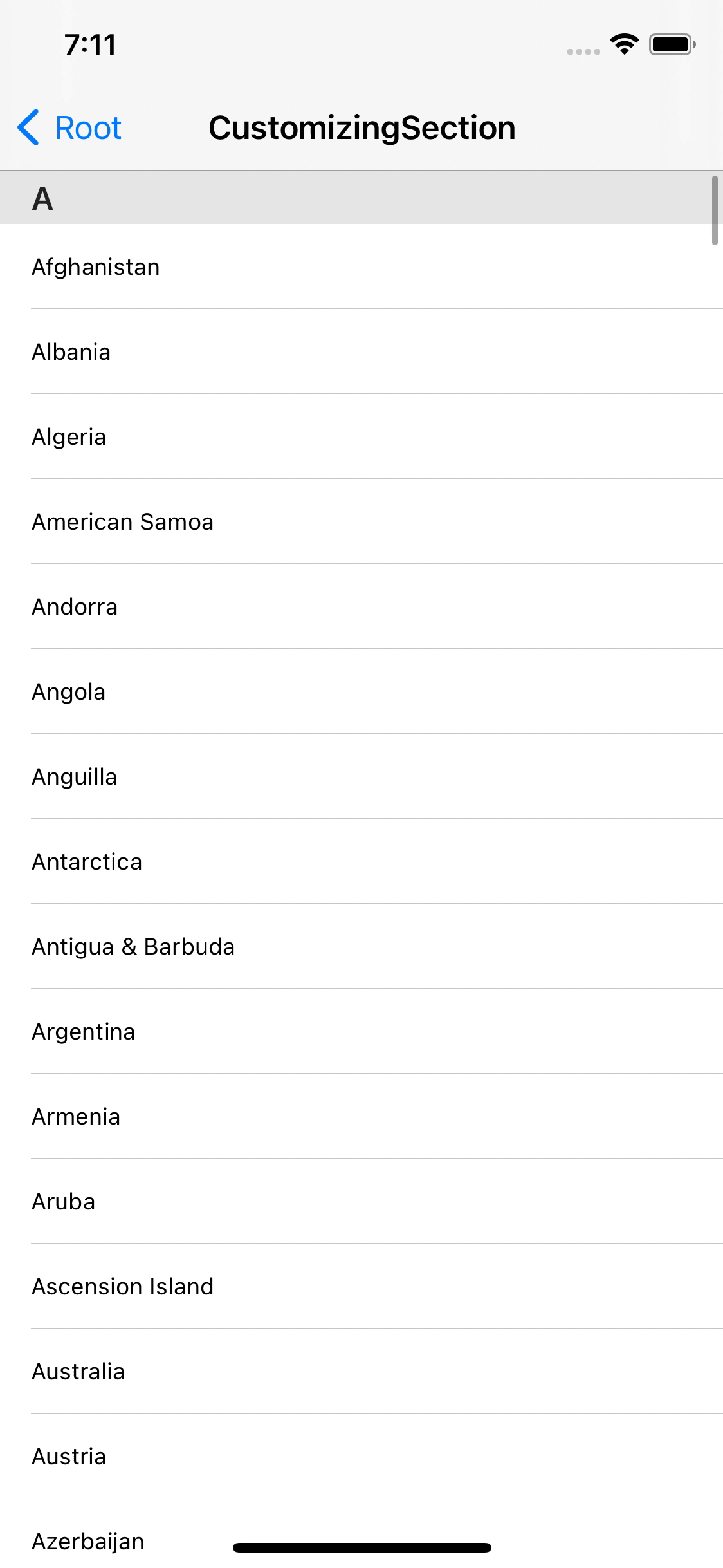 반환된 배열은 알파벳이나 초성에 따라 여러 섹션에 나뉘어 각각의 언어로 Table에 표시된다.