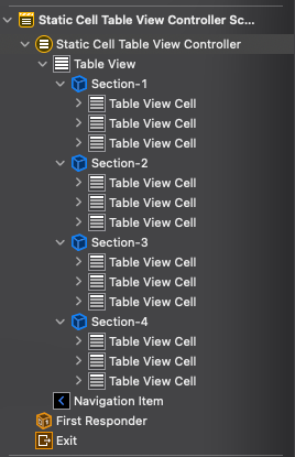 TableView의 attribute Inspector에서 Content 항목을 Static Cells로 바꾸는 걸로 간단하게 전환할 수 있다.
