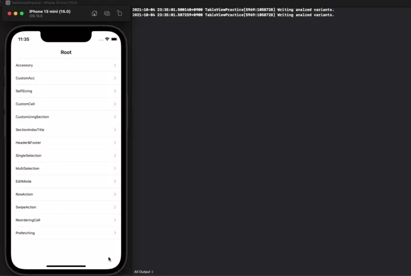 이렇게 구현한 tableView는 결과는 이전과 다를 바 없지만 조금 손쉽게 TableView를 구성할 수 있다는 장점이 있다.