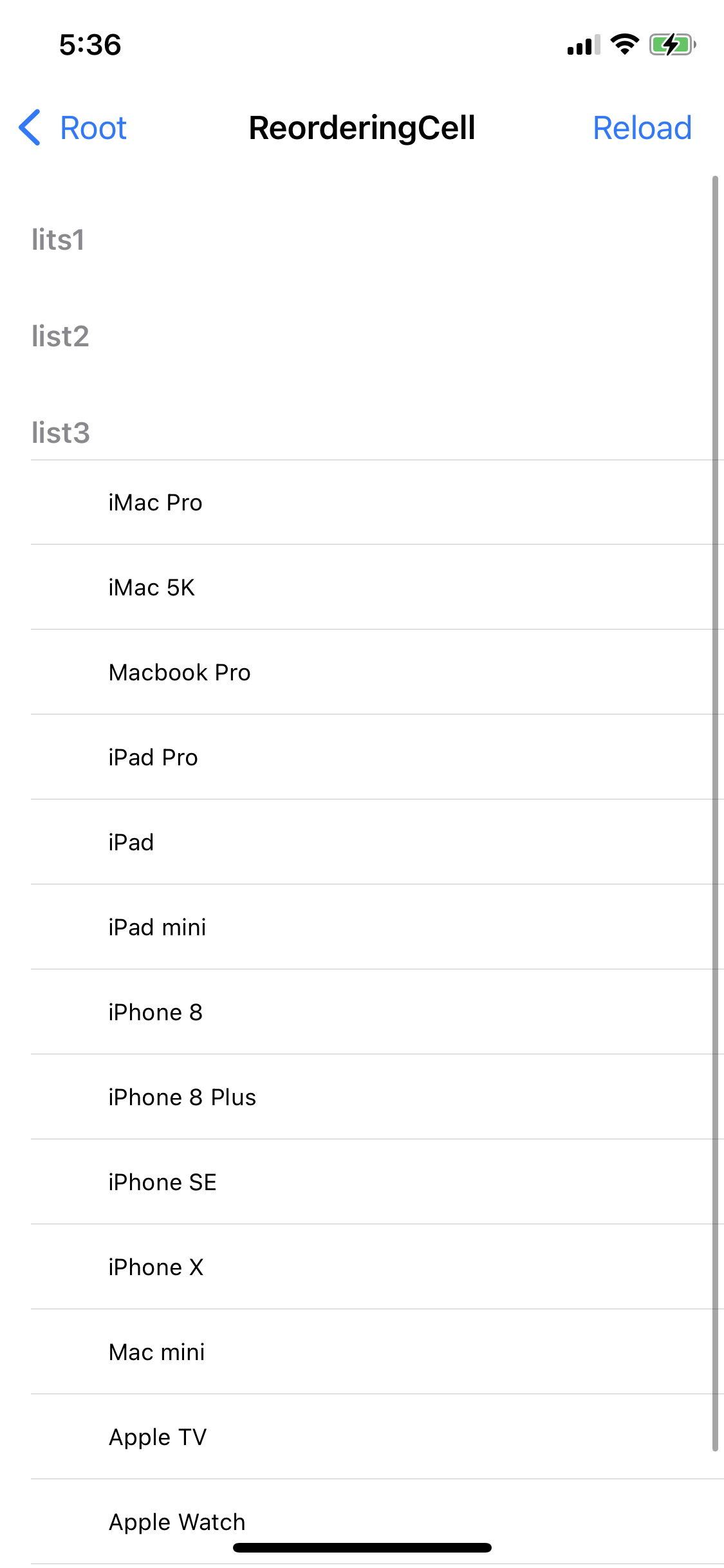 var list3 = ["iMac Pro", "iMac 5K", "Macbook Pro", "iPad Pro", "iPad", "iPad mini", "iPhone 8", "iPhone 8 Plus", "iPhone SE", "iPhone X", "Mac mini", "Apple TV", "Apple Watch"]