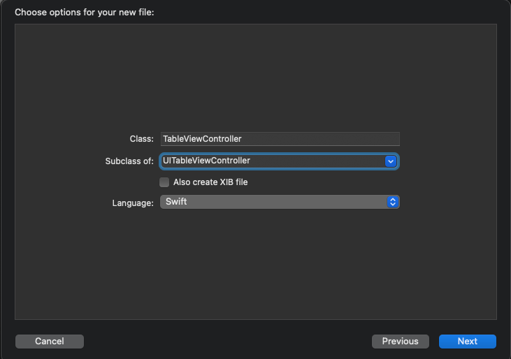 TableViewController와 연결하는 클래스 파일은 UIViewController Subclass가 아닌 UITableViewController subclass를 가진다.