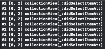 선택 이벤트는 Delegate 패턴으로 처리하며, 관련 메소드는 UICollectionViewDelegate 프로토콜에 선언되어있다.
