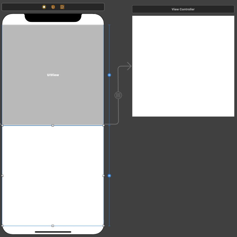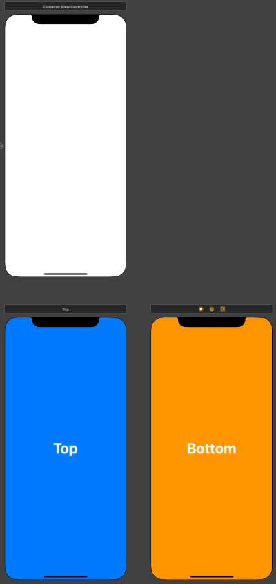Top과 Bottom 씬을 상단의 View Controller에 표시하도록 구현한다.
