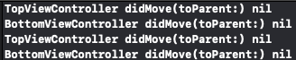 TopViewController에서 willMove와 didMove 메소드가 호출됐고,