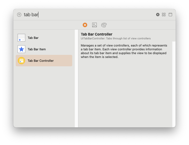 라이브러리에서 Tab Bar Controller를 찾아 추가한다.