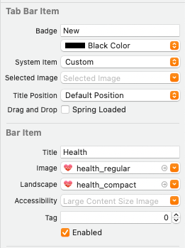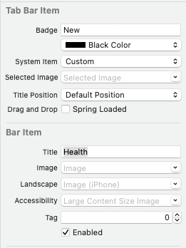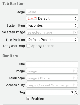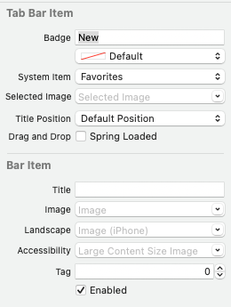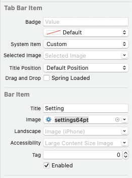 해당 속성을 통해 Tab Bar Item의 Title, Image, Badge를 설정한다.