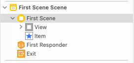 First Scene에는 Button이 두 개가 존재하고, 이는 FirstSceneViewController 클래스에 avtion으로 연결되어있다.