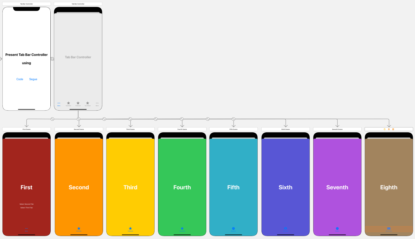 원래의 씬과 Tab Bar Controller를 Modally로 연결한다.