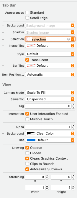 Tab Bar를 선택하고 Attribute Inspector를 확인해 보면